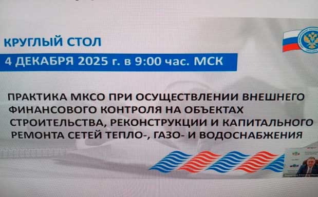 4 декабря 2025 года сотрудники Контрольно-счетной палаты Новозыбковского городского округа приняли участие в мероприятии в режиме видеоконференции, проведенном Союзом муниципальных контрольно-счетных органов на тему: «Практика МКСО при осуществлении внешнего финансового контроля на объектах строительства, реконструкции и капитального ремонта сетей тепло-, газо- и водоснабжения».